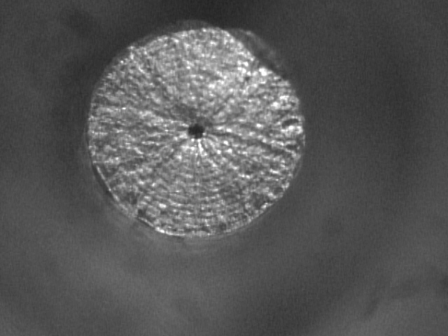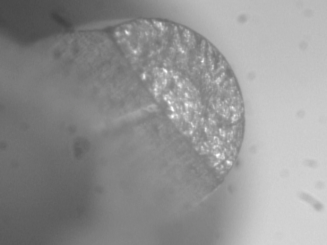 This creates a well defined "crater" with sharp edges at the tip of the ferrule. What used to be the flat surface of the tip